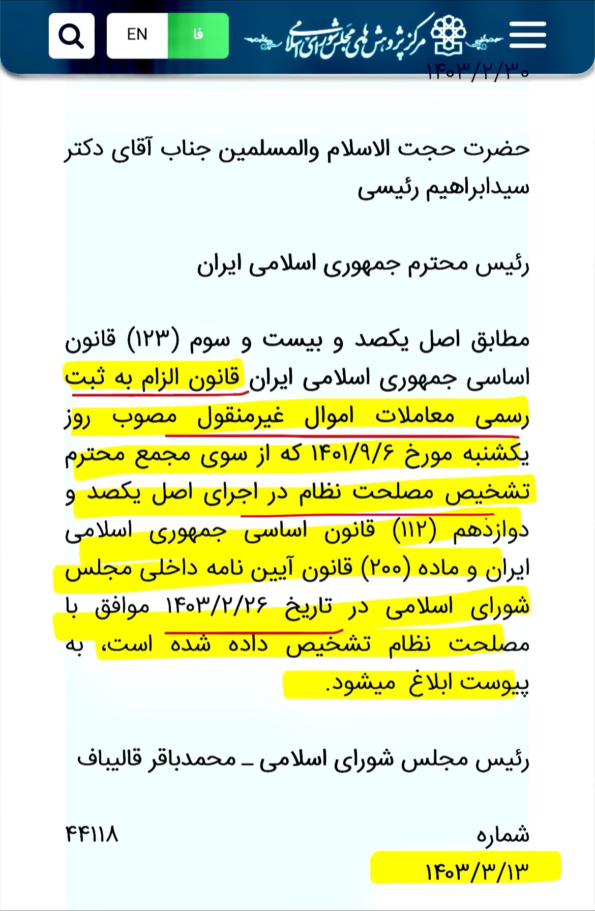 اطلاعيه مهم درخصوص قانون الزام به ثبت رسمی معاملات